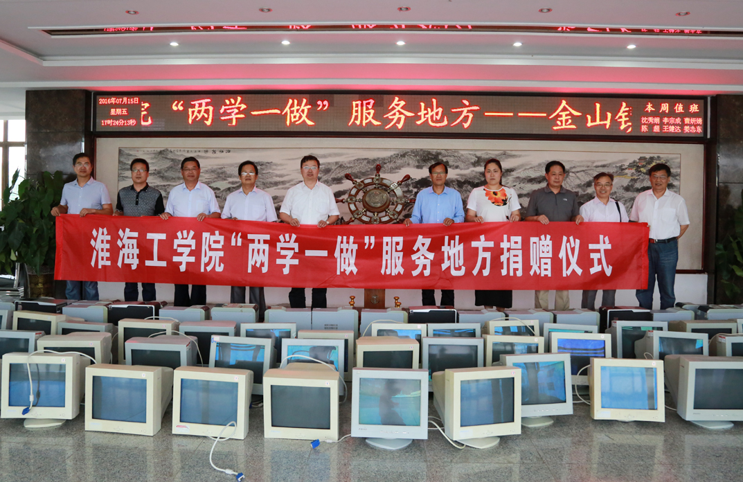 为深入推进“两学一做”学习教育,使“学”得深入、“做”得有效,7月15日,在公司党委副书记、副董事长宁晓明带领下,公司党委书记周清华、经理樊华、副经理张根友、校教学督导组组长刘平昌等一行六人来到赣榆区金山镇开展“两学一做”服务地方捐赠活动。金山镇党政班子热情接待了公司领导一行。