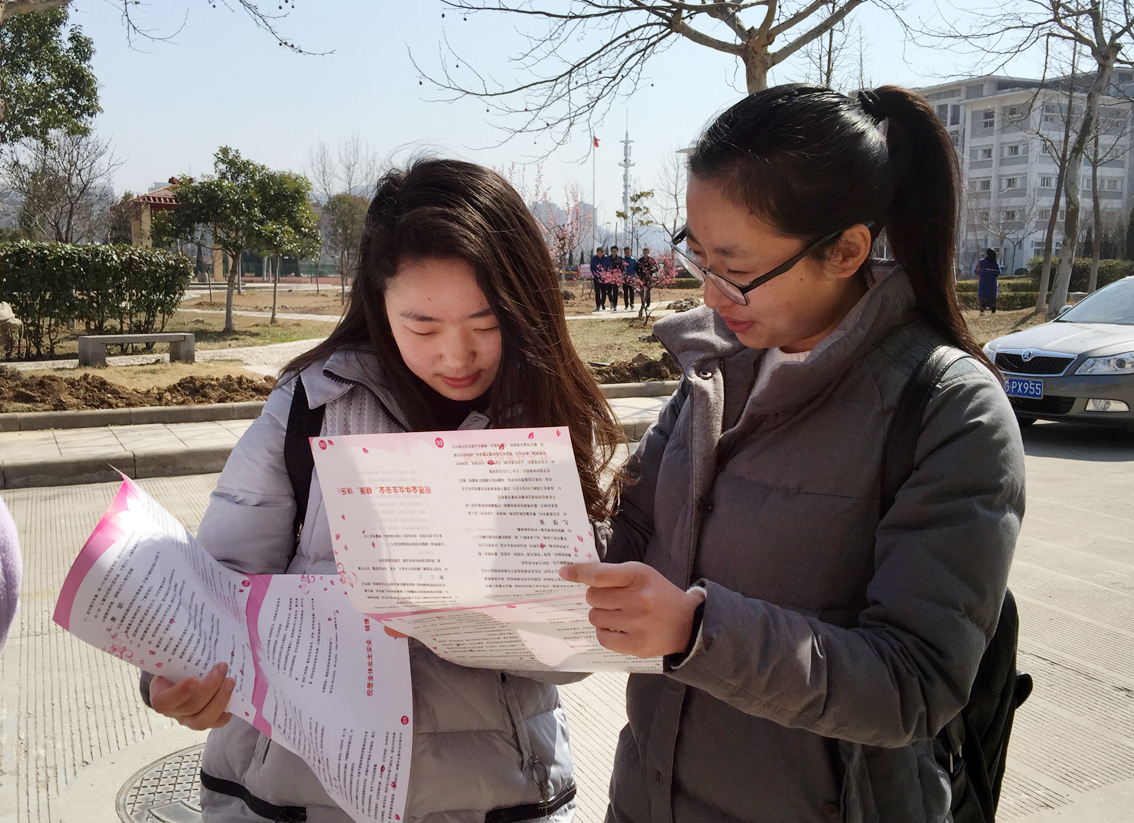 在国际“三八妇女节”来临之际,学院保卫科组织人员在东港餐厅前分发《女生安全防范攻略》宣传册。宣传册从高校女生日常生活中的着装、住宿、日常出行、交通乘车、兼职打工、路遇生人、常见圈套、遇险、侵害等九个方面归纳了50条常见的安全防范措施。指导女生的安全行为规范。