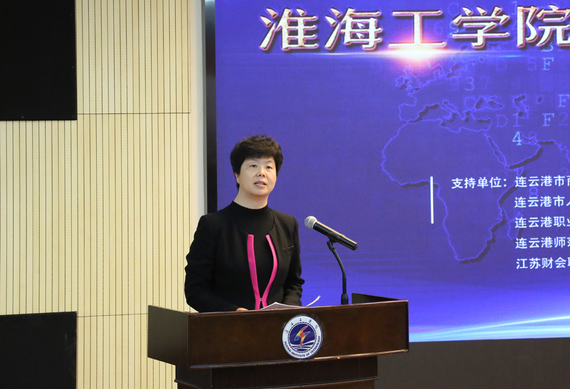 3月25日,淮海工学院在黄海厅隆重举行“2017阿里巴巴跨境电商人才培育基地签约仪式暨互联网+电子商务人才创新发展论坛”.连云港市政府副市长吴海云,淮海工公司党委副书记副董事长宁晓明,连云港市政府副秘书长徐岳听先生、阿里巴巴集团BD专家刘华先生、连云港市商务局局长任瑜先生、连云港市人社局副局长邵晓峰先生、连云港市商务局副局长刘明台先生、阿里巴巴华东区资深经理杨志浩先生及连云港海关,连云港国检,连云港国税,外汇管理局和县区商务局的各位分管领导和连云港市各大中专院校相关领导出席本次会议,约300多名师生参加本次活动。淮海工学院院教务处处长李纪明主持本次会议。