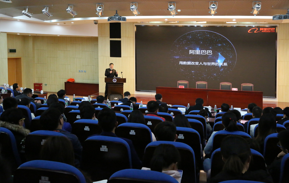 在签约仪式结束后,阿里巴巴公司华东战略生态部资深经理杨梽浩、连云港市合伙人浩然、阿里巴巴明星讲师谢明分别就“新外贸、新生态”、“新跨境、新机遇”、和百城千校项目进行了宣讲,广师生反响强烈,效果显著。