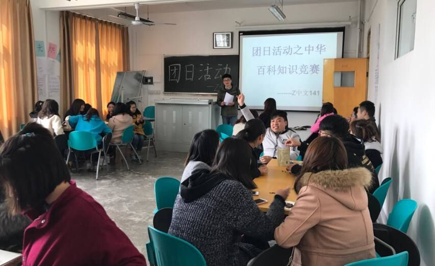 为进一步丰富校园文化生活,推进“书香校园”建设, 让青年团员们在弘扬优秀文化过程中涵养核心价值观,Z中文141班于3月27日中午在厚德楼205教室举办“团支部活力提升之中华百科知识竞赛”主题团日活动。