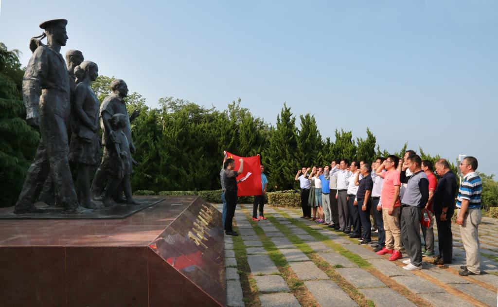 离开警示教育基地,大家来到了连岛邓小平公园,瞻仰了“邓小平与人民在一起” 群雕。在群雕前,面对鲜红的党旗,全体党员举起右拳,庄严宣示:“我志愿加入中国共产党,拥护党的纲领,遵守党的章程,履行党员义务,执行党的决定,严守党的纪律,保守党的秘密,对党忠诚,积极工作,为共产主义奋斗终身,随时准备为党和人民牺牲一切,永不叛党!”