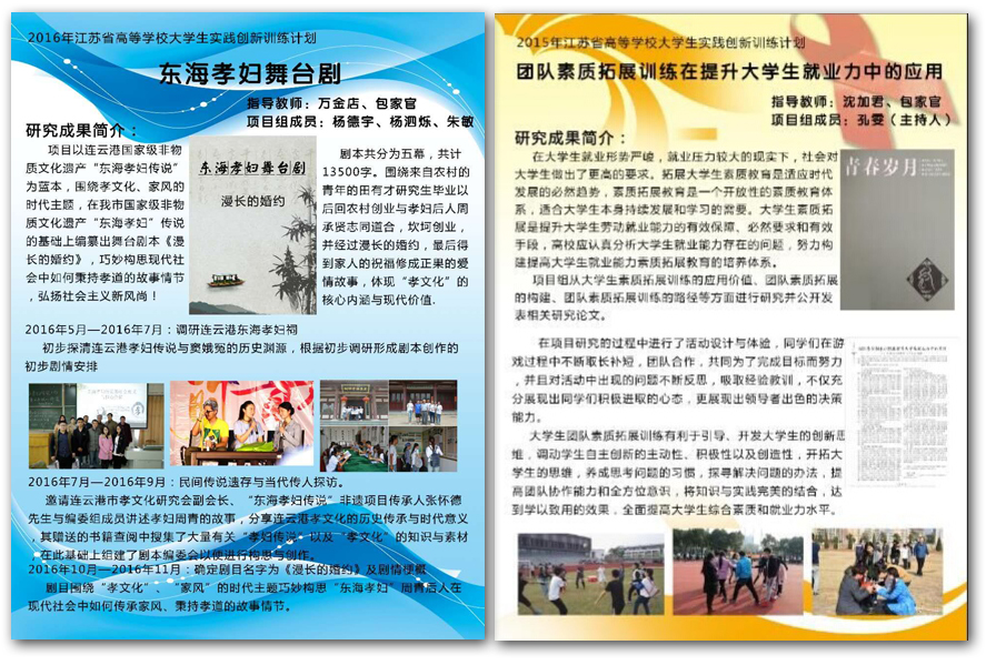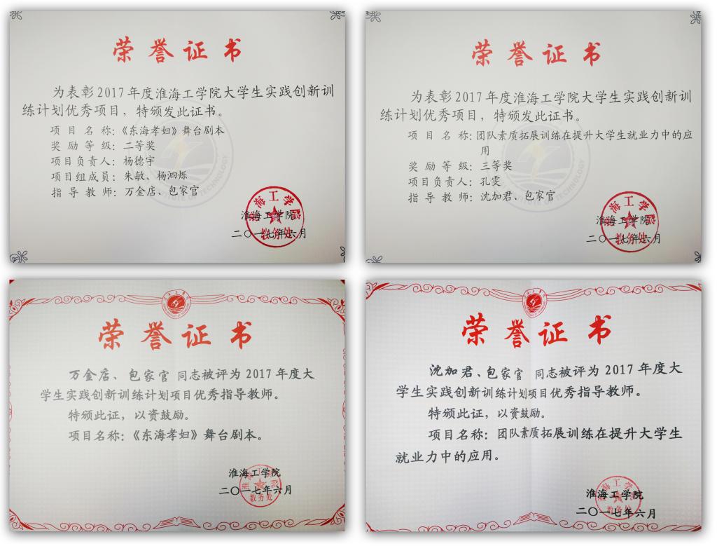经过结题答辩与专家评审,公司党委副书记、副经理万金店指导,2013级员工杨德宇、朱敏、杨泗烁完成的2016年省级指导项目“《东海孝妇》舞台剧本”荣获二等奖。副经理沈加君指导,2012级员工孔雯负责的2015年省级指导项目“团队素质拓展训练在提升老员工就业力中的应用”荣获三等奖。