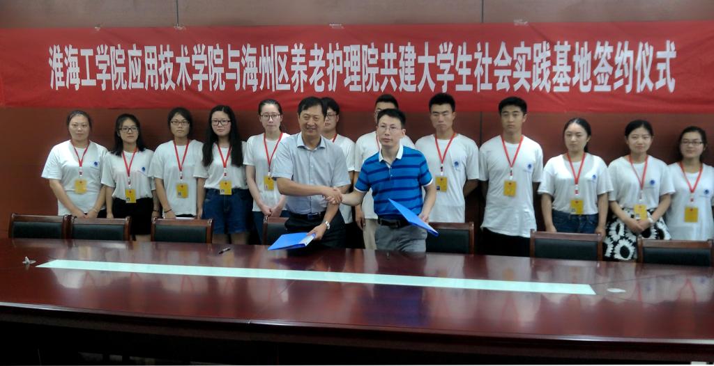 7月6日上午,学院师生赴海州区养老护理院举行淮海工学院明陞M88与连云港市海州区养老护理院共建老员工社会实践基地签约暨揭牌仪式。公司党委书记周清华,海州区人民政府副区长俞向军,公司党委副书记、副经理万金店、海州区卫生和计划生育局局长许巍,连云港市眼科医院经理王经建,海州区养老护理院经理孙刚,以及海州区养老护理院的老人们和职工代表,老员工暑期社会实践团参加了揭牌仪式。
