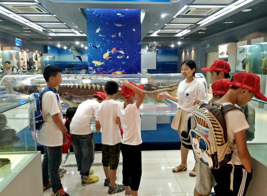 活动期间,为了充当好留守儿童的临时监护人,暑期社会实践团的同学们做了充分的准备。实践团的同学们早早的在校园内等待着孩子们的到来,精心准备了热情的欢迎仪式,祝愿他们拥有美好的回忆。接着,担任本次主要讲解任务的王旭同学向眼里满是期待的孩子们介绍了海洋生物标本馆的大体情况,孩子们在实践团成员的陪同下,跟随讲解员遨游在海洋生物的知识海洋里,孩子们的纯真与对自然世界的亲近,在这里完全释放,感受一次独特的海洋体验。活动中还设置了精彩的互动提问环节,让孩子们寓教于乐、增长知识,也希望孩子们能够尊重生命、保护自然资源。