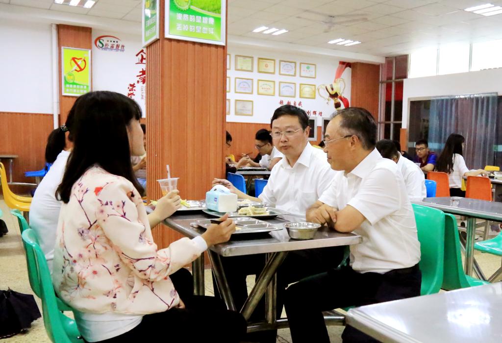 傍晚,宁晓明一行走进了员工餐厅,与同员工们一起就餐,边吃边聊,听取大家的意见。