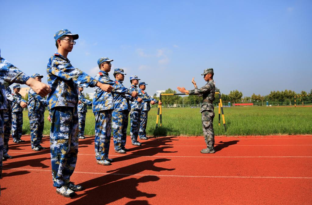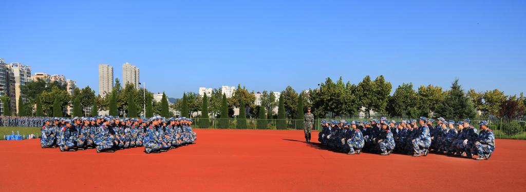 9月12日下午,学院2017级471名新生在宋跳校区运动场整装列队,开始了为期两周的军事训练。