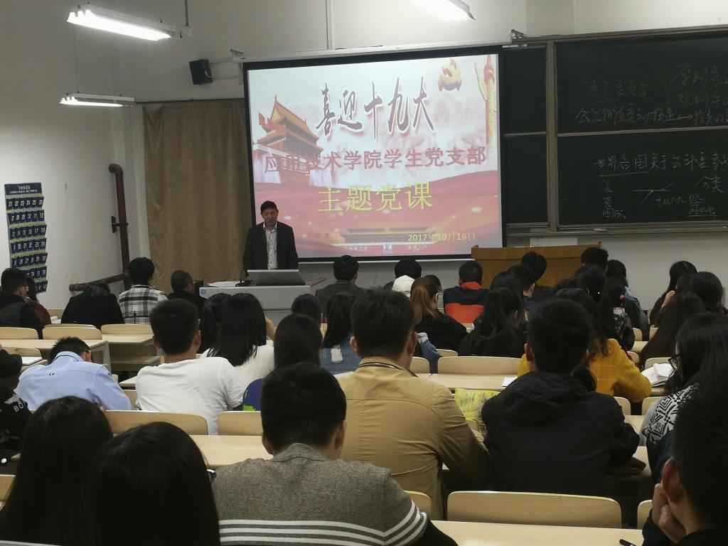 10月16日晚,公司员工党支部结合常态化制度化“两学一做”学习教育在敦行楼213教室举办“喜迎十九大”主题党课,以“最党内”的形式献礼党的十九大。学院全体辅导员、员工党员参加了本次党课。
