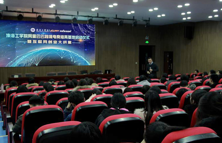 日前,淮海工学院阿里巴巴跨境电商培育基地启动仪式暨第一期互联网创业大讲堂在淮海工学院宋跳校区报告厅成功举办,副经理张根友、校企办、学工办相关人员,阿里巴巴跨境人才培育基地负责人浩然、淘宝大学讲师方旭及相关老师参加了启动仪式。