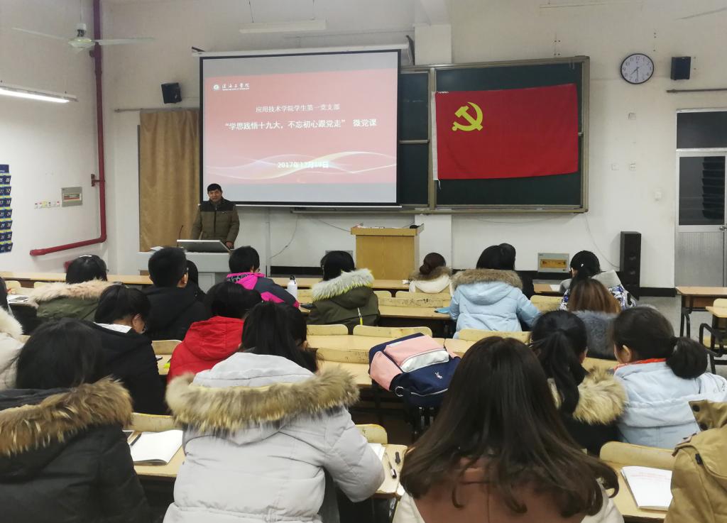 为深入学习十九大报告精神和习近平新时代中国特色社会主义思想,全面提升党支部党建工作活力,推动师生党员坚定信仰、奋发有为、勇于担当,公司员工第一党支部于12月19日晚,举办“学思践悟十九大,不忘初心跟党走”微党课学习活动。