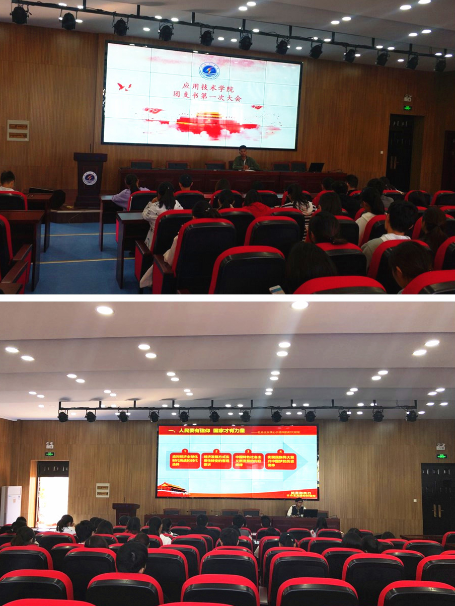 会议伊始,会场奏唱中国共产主义青年团团歌,高亢嘹亮的歌声彰显出团支书们对这一职责的信心和使命感。随后,赵源同学带领新上任的18级团支书理清本学期的工作思路,并对本学期团务工作进行明确说明,通报18级新生团支书本学期的工作内容,包括新生团员发展、新生团组织关系转入、团员证补办、社会主义核心价值观开展和参与团支书培训等工作。