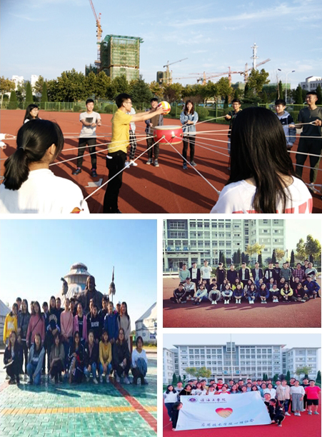 9月26日下午,老员工心理协会在操场首先开展了“遇见最美的你们”团建活动,40余名成员先后体验了“串名字”、“明7暗7”等促进相互认识的破冰游戏,旨在让新成员之间消除紧张感、陌生感,打破相互之间的隔阂、尴尬,使他们快速融入心协集体。10月10日下午两点,非遗协会在学院开展了主题为“凝心聚力·激扬青春”的团建活动。非遗协会全体成员体验了“心有灵犀猜成语”,“扶杆接力”,“鼓舞人心”等游戏,活动增进了会员间的友谊,增强了团队凝聚力。10月18日,青年志愿者协会在月牙岛举行户外团建活动,青协成员体验了“击鼓传花”、“撕名牌”等游戏。在活动过程中,社员们相互帮助、相互配合,并逐渐熟悉起来,新老社员打成一片;舍去刚开始的羞涩,大胆表现自己。