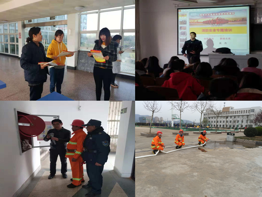 11月初,学院保卫科参加了连云港市高新区消防大队召开的消防宣传月布置大会,按照统一部署,结合公司年度消防安全工作安排,拉开了宣传月各项活动。从十一月开始,学院的橱窗张贴消防宣传海报,电子显示屏滚动播放消防安全标语、警示短片,营造宣传消防安全氛围。11月8日开展了全院消防安全大检查,重点对员工宿舍使用违禁电器、电源私拉乱接,院内电动车违规充电,食堂、实验室规范动火作业,各楼宇场馆消防器材设施完好率做了全面检查,整改了存在的安全隐患。11月9日,学院保卫科在院内食堂、创业中心、员工公寓等地向师生派发消防宣传单1000份,宣传学校防火特别是员工宿舍防火注意事项,及近年来高校发生的典型火灾案例。11月14日下午,邀请连云港安居防火中心吴杰讲师在敦行楼205、207教室举办了两场消防知识讲座,着重就火灾危害、灭火器材使用方法、火场疏散逃生的知识进行了讲解。11月28日,在学院篮球场举行了干粉灭火器灭火演练和消火栓消防水枪喷水演示,让同学们亲身体验消防器材的使用方法和注意事项。