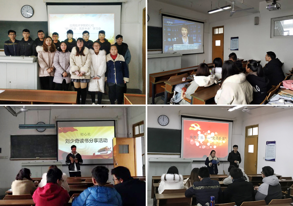 自2018年10月底成立以来,初心社先后举办了纪念刘少奇诞辰120周年读书分享、“学习全国教育大会精神,献礼校第四次党代会”学习交流、“党员扑克”趣味理论学习等系列活动。作为员工社团党支部进行党员社团化自我教育管理机制进行有益探索的重要载体,初心社打破传统自上而下的党员教育管理模式,丰富了员工党员“两学一做”常态化制度化形式,增强了开展“不忘初心、牢记使命”主题教育的生动性。同时,也让来自不同员工社团以及每学年新转入的专转本员工党员进一步增强凝聚力。