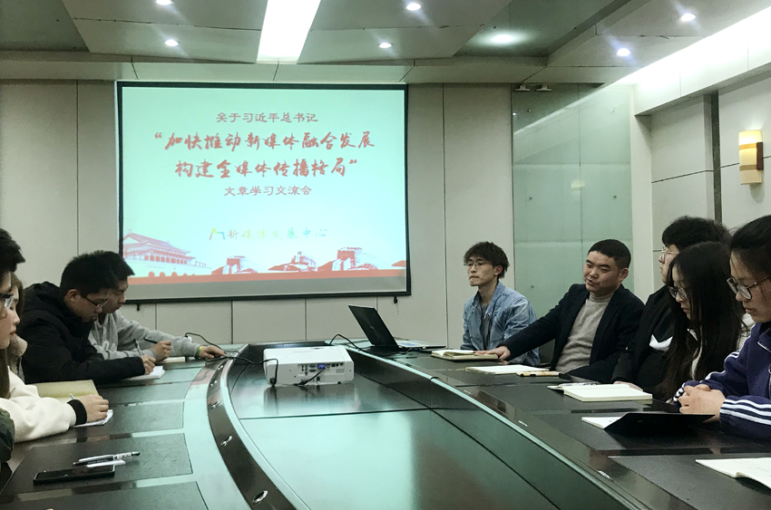 3月18日晚,公司新媒体发展中心举办学习交流会,集中学习了3月16日出版的第6期《求是》杂志发表的中共中央总书记、国家主席、中央军委主席习近平的重要文章《加快推动媒体融合发展 构建全媒体传播格局》。相关辅导员及学院新媒体中心骨干、技术部全体成员参加了本次学习交流。