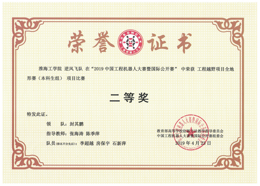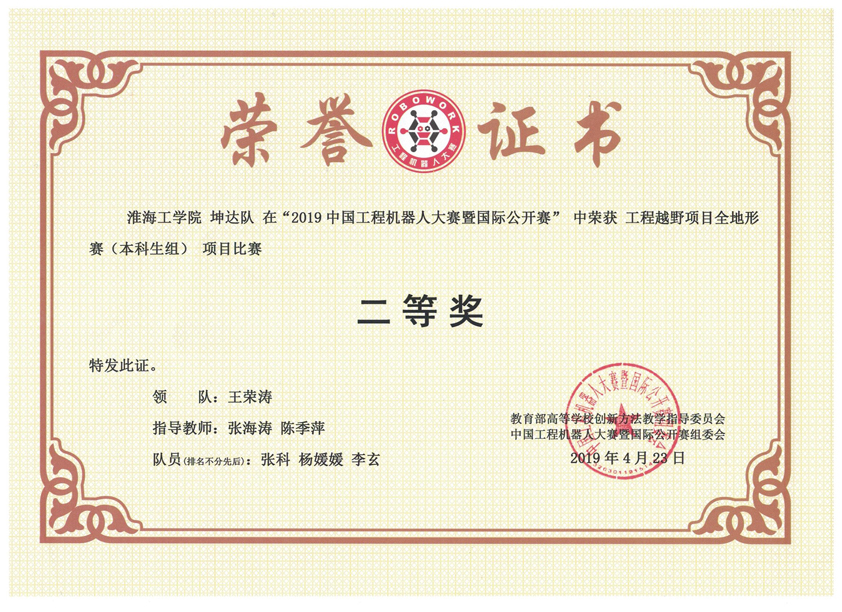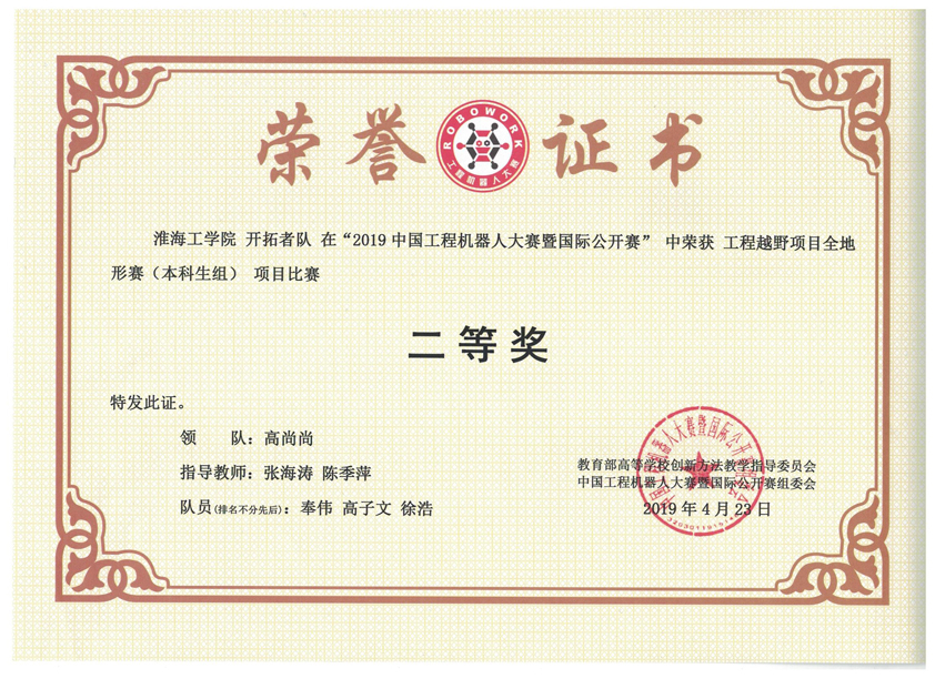2019中国工程机器人大赛暨国际公开赛于4月22-24日在广东韶关举行,国内300多所高校的1726支代表队8000多名员工、指导教师参加了这次比赛。中央电视台新闻直播间也进行了专题报道。公司房保宇、封其鹏、李玄、李超越、奉伟、徐浩等12名同学组成的3个团队,参加了本次比赛中“机器人工程越野组”比赛,这是公司第一次单独组队参赛。在同学们、指导教师的共同努力下,克服诸多不利因素,取得了三个二等奖的好成绩,经比赛裁判组、总裁判长确认,组委会公示等环节,获奖证书已下发。本次竞赛的突破将更有力的促进公司员工创新、创业活动的开展。