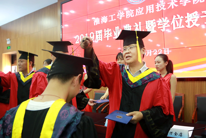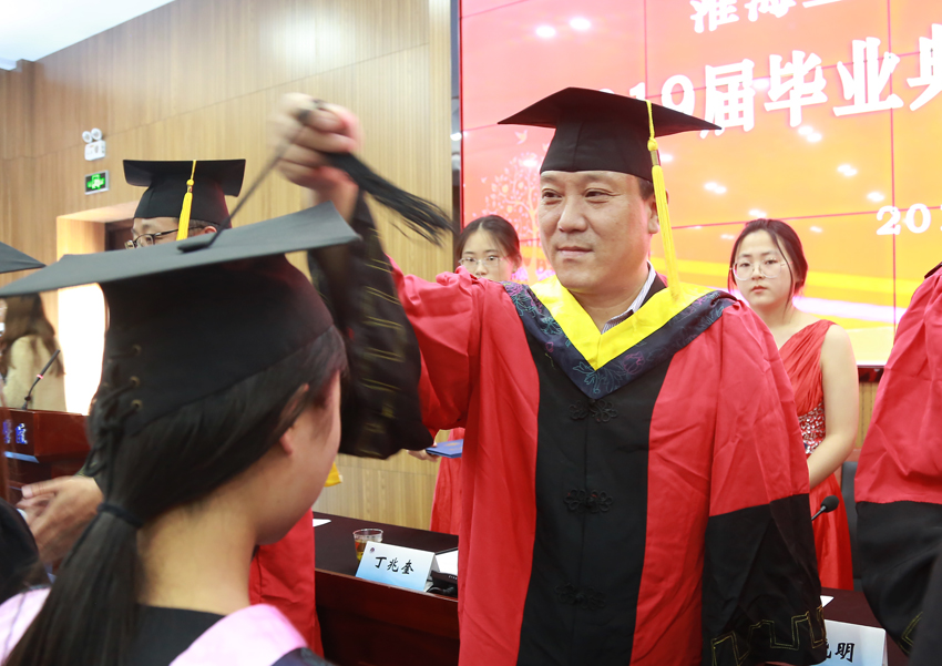 戴华江代表全体教师向毕业同学送上美好祝愿。他说,无论你在何处,你们都要谨记自己是一个“淮工人”,你的身上闪耀着“淮工精神”;无论你身在何方,母校的教师都会牵挂你们、祝福你们,做你们人生路上的坚强后盾。