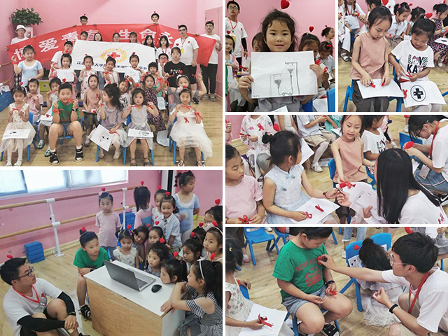 根据采访公司万金店副书记得到的“献血观念,从娃娃抓起”的启发,志愿者们在旺旺舞蹈房开展了幼儿教育,对小朋友们进行视频动漫教育,讲述了关于献血小故事教育,还开展了献血血宝宝绘画比赛,在活动中,他们和小宝宝们其乐融融。活动的最后,志愿者们给每位小朋友送了手工制作的小礼物(红丝带,蝴蝶结,手环带,红心等)。