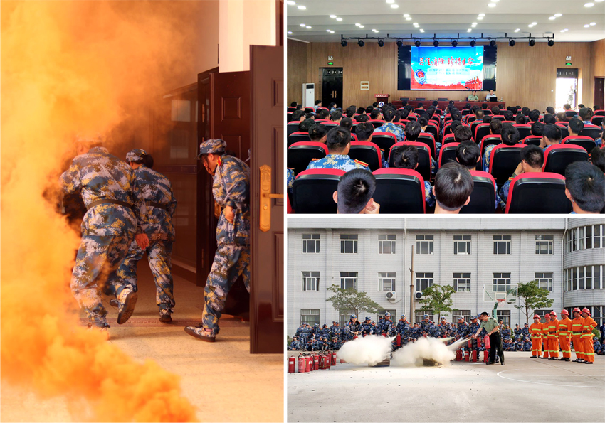 在敦行楼报告厅,苏欣从火灾对人民生命财产的严重危害,到造成火灾的主要原因;从火灾的种类划分,到大学高校常见的火灾案例;从常见的灭火设施使用方法,到安全疏散逃生注意事项。通过细致的理论分析,结合大量鲜活的案例,为大家上了生动的一场消防安全知识讲座。随后在开发区消防大队官兵指导下同学们模拟教学楼失火,有序疏散同学们到室外篮球场安全区域。在篮球场消防官兵讲解了手提式干粉灭火器的使用方法,并示范了灭火器对油盆灭火。同学们踊跃申请出列体会灭火器灭火,亲身感受火场扑灭初期火灾。