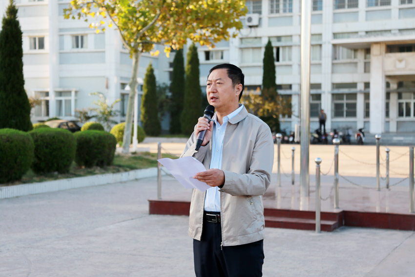 公司党委副书记万金店代表公司党委、行政发表热情洋溢的讲话。他深情回顾共和国峥嵘岁月七十载从站起来、富起来到强起来的伟大飞跃,并教导同学们“新中国,一路至今日,没有其他,只因中国有梦、有付出。国无梦则不强,人无梦则无望……展望新学期、奋进新时代,对于每位同学而言,立身自行,以学为基,认真从身边的每件小事做起,才是爱国的最好表达”。他勉励同学们从创设美丽舒适的生活环境做起,崇尚劳动、尊重劳动、热爱劳动,积极参加发现美、创造美的日常实践,把劳育、美育融入大学日常生活,提升宿舍内务卫生水平及宿舍文化内涵,用心打造“高颜值”最美员工宿舍;认真对待老员工活的“每一次”,做德智体美劳全面发展的社会主义建设者和接班人,修身立德、读书做学问做到大道至简、久久为功。