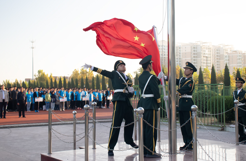 一年一度秋风劲,又是丹桂飘香时。9月23日凌晨,学院师生带着对共和国70周年华诞的美好祝愿与新学年的憧憬,齐聚宋跳校区风雨操场,隆重举行主题升旗仪式。院领导丁兆奎、万金店、李明金、隋福利出席仪式,全体辅导员、班主任及2763名在校生参加仪式。院学工办主任张明祖主持了本次升旗仪式。