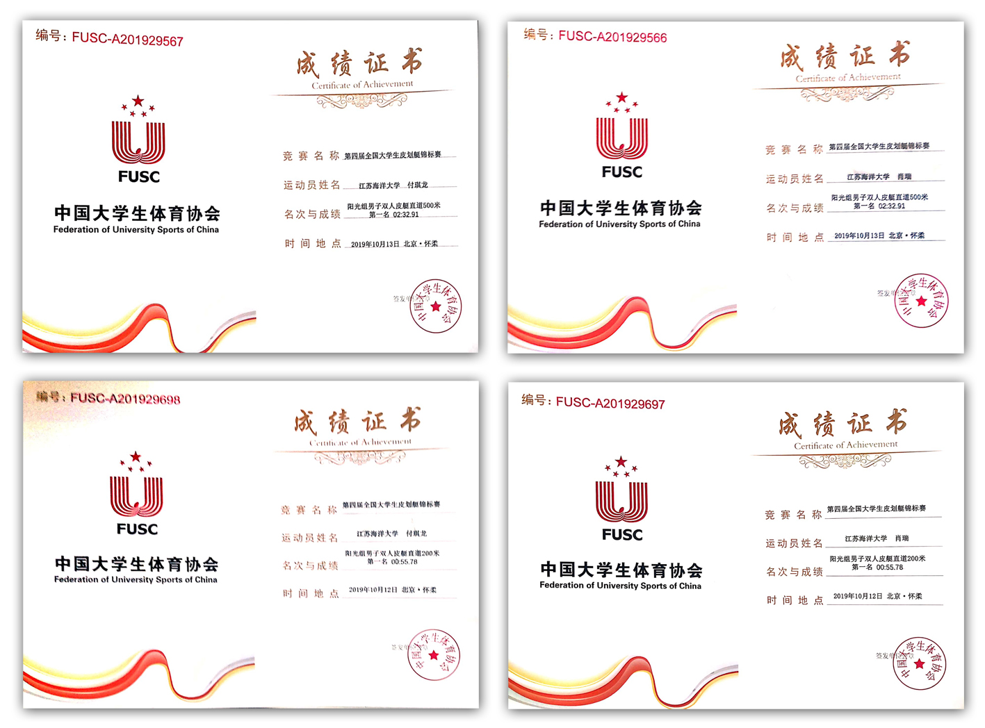 作为校皮划艇运动员,肖瑞与付琪龙两名同学自2018年9月入校以来多次代表学校参加各项皮划艇国家级老员工及无限制组别比赛,取得2018中国皮划艇公开赛男子双人休闲艇600米直道竞速赛第四名、第三届全国老员工皮划艇锦标赛男子双人皮艇直道500米第四名与200米第七名、2019第三届中国皮划艇公开赛男子双人休闲艇500米直道竞速赛第三名与男子单人海洋舟500米直道竞速赛第五名等一系列优异成绩。