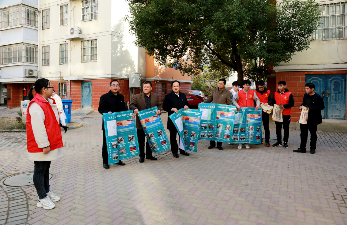 在学院领导班子的带领下,师生党员们先后来到社区居民楼与生活服务区,通过张贴创建文明城市宣传标语,发放创文宣传单与手提袋,开展创文活动问卷调查与知识讲解等形式让社区居民充分了解“创文”的必要性、紧迫性和重要意义,引导他们积极投身“创文”工作中。进行创文宣传和问卷调查的同时,院领导还以交流访谈的形式就社区居民对创文认识及应知应会知识掌握情况等进行调研,以实际行动助推事业发展,为群众办实事,做好事,践行初心和使命。