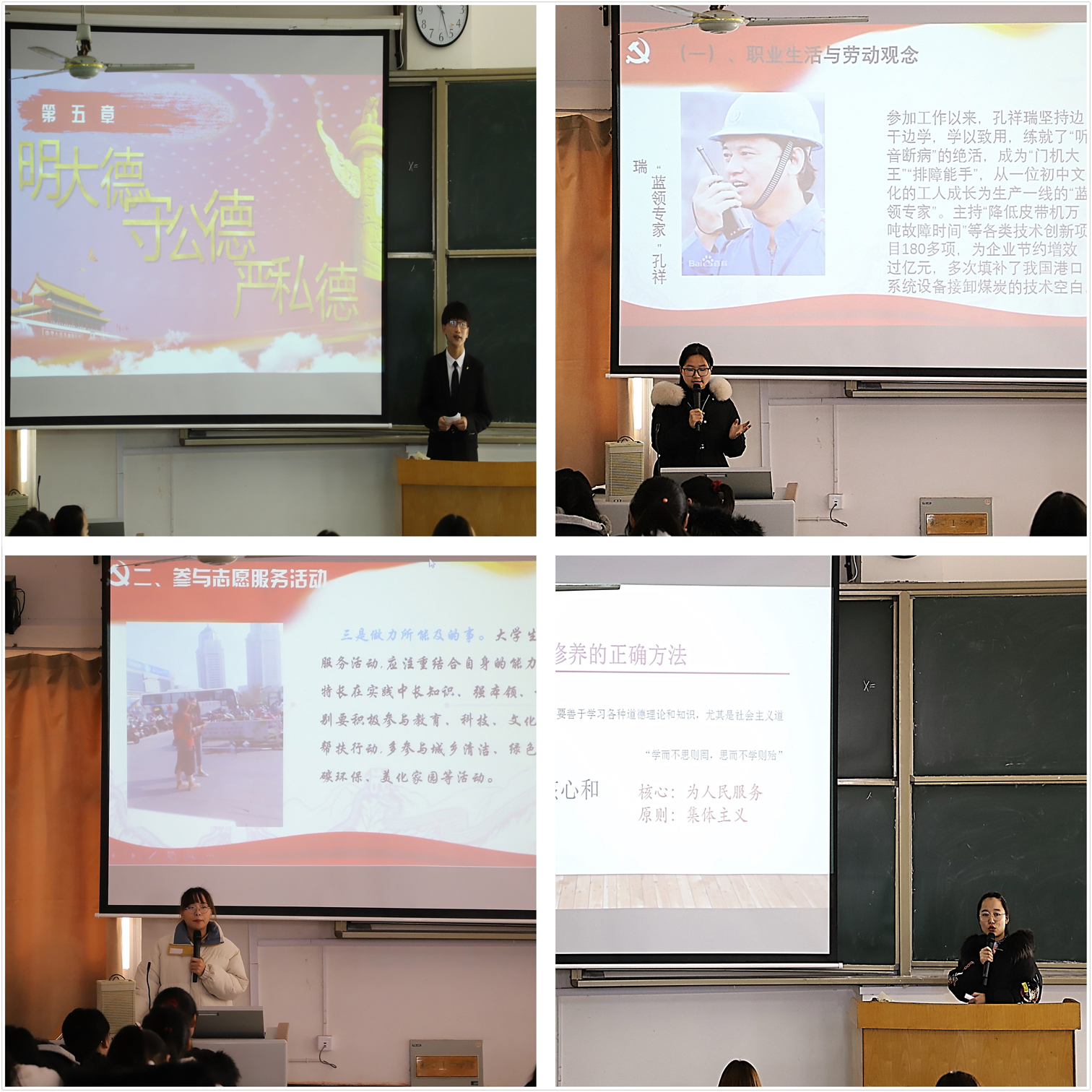 此次课程的主题为“明大德·守公德·严私德”,任课教师周清华将翻转课堂的教学模式应用到思政课教学过程中,以员工为中心,以员工是主演,教师是导演的形式,发挥员工主观能动性,引导员工深化对思政课教学内容的认识和思考,来帮助同学们筑牢理想信念之基,传承中华传统美德。