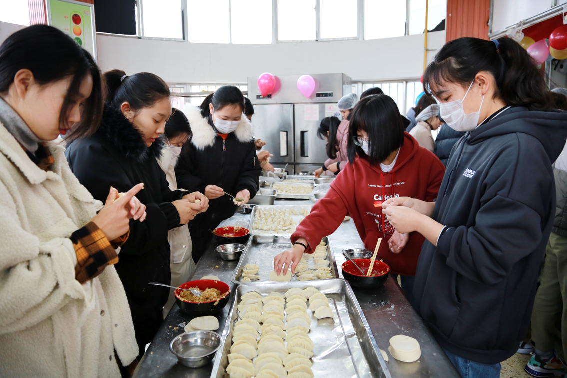 下午3点,活动在员工餐厅准时开始,食堂的工作人员为师生们准备好饺子皮,调好了饺子馅,学院的师生员工一起包饺子,丁兆奎亲临现场,亲自给同学们演示如何包饺子,李明金也现场展示了多种饺子包法,同学们热情高涨,一个个饺子摆满了桌子,有花边的、有元宝的、有四角的、有麦穗的,形状各异。渐渐的同学们都掌握了包饺子的技巧,还开始了包饺子比赛,老师和同学们有说有笑,场面十分温馨和谐,到处洋溢着“家”的味道、“家”的温暖。