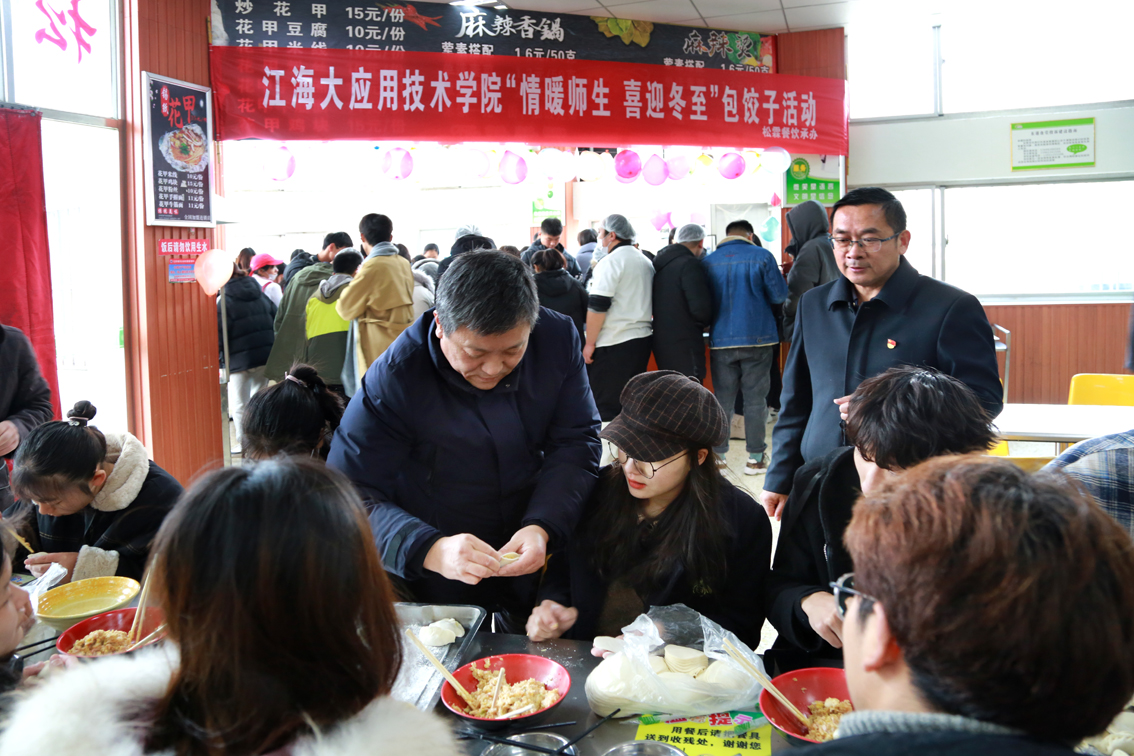 为促进学院各部门合作交流,增进师生情感,丰富校园生活,12月20日下午由院工会主办,松霖餐饮承办的学院“情暖师生、喜迎冬至”包饺子活动在员工餐厅如期举办,在寒冷的冬日给全院师生送去了温暖,让学院的广大师生一起度过一个难忘的冬至。经理丁兆奎,副经理、分工会主席李明金及部分师生员工参加了此次活动。