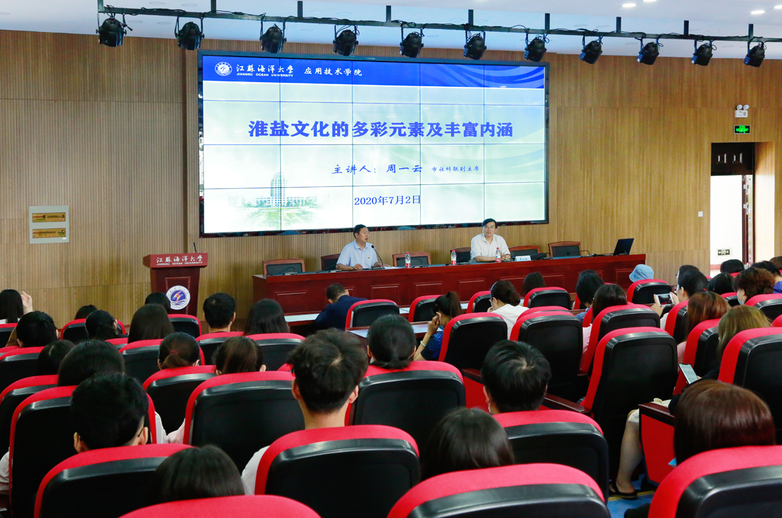 为进一步贯彻落实习近平总书记关于大运河文化带建设的重要指示精神,以文化自信为学校内涵建设高质发展与学院应用技术技能人才培养改革推进注入精神动力,7月2日上午,学院在敦行楼201报告厅举办“淮盐文化的多彩元素及丰富内涵”专题讲座,市社科联副主席周一云应邀激情开讲。学院160余名师生现场聆听本次讲座。