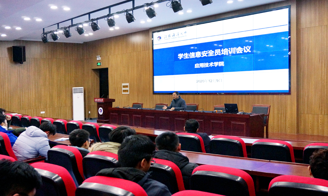 为贯彻落实高校立德树人的根本任务,围绕员工、关照员工、服务员工,维护员工合法权益,保持校园安全稳定,创建“安全、文明、和谐”的校园环境,12月9日中午,学院在敦行楼201报告厅召开班级信息安全员培训会。公司党委副书记万金店对来自全院71个班级的安全信息员进行培训。院学工办副主任包家官、辅导员孙成广参加培训会。