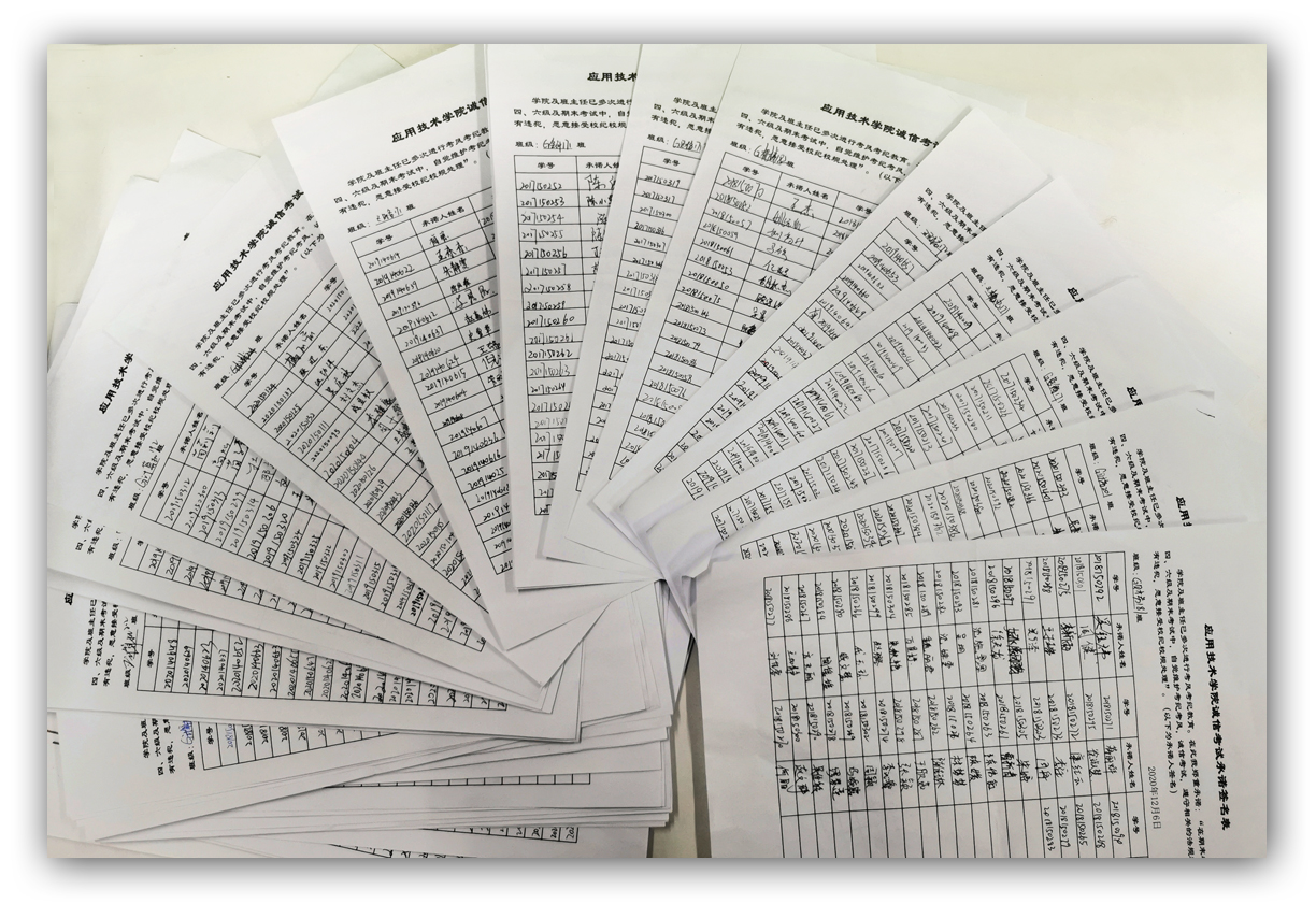 12月6日,学院组织2947名在校生签订诚信考试承诺书,教育同学们“在期末考试及英语四、六级考试中,自觉维护考纪考风,诚信考试,遵守相关的法规和规定”。英语四、六级考试前学院官微及时推送“遵守考风考纪,让我们与诚信相约”相关提醒营造氛围。同时组织召开诚信教育座谈会与考试作弊员工典型案例研讨活动。