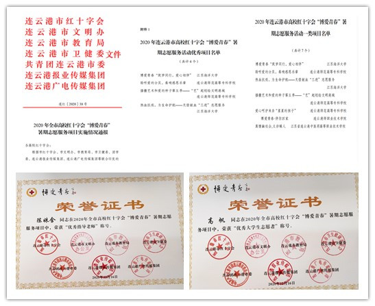 近日,由市红十字会、市文明办、市教育局、市卫健委、团市委、连云港报业传媒集团、连云港广电传媒集团等联合表彰的连云港市“博爱青春” 暑期志愿服务项目,公司热血抗疫,为生命护航----无偿献血“三进”志愿服务,被评为全市仅有的4项高校红十字会“博爱青春”暑期志愿服务活动优秀项目,并被评定为2020年连云港市高校红十字会“博爱青春”暑期志愿服务活动一类项目。