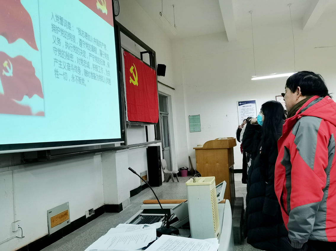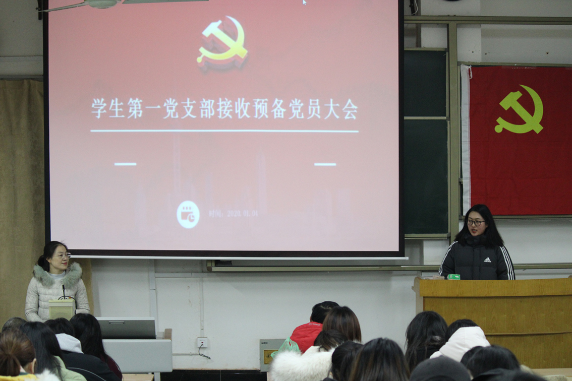 1月4日,员工第一党支部在敦行楼113召开接收预备党员大会。党支部党员及发展对象50余人参加会议。党支部书记王晓莉主持会议。