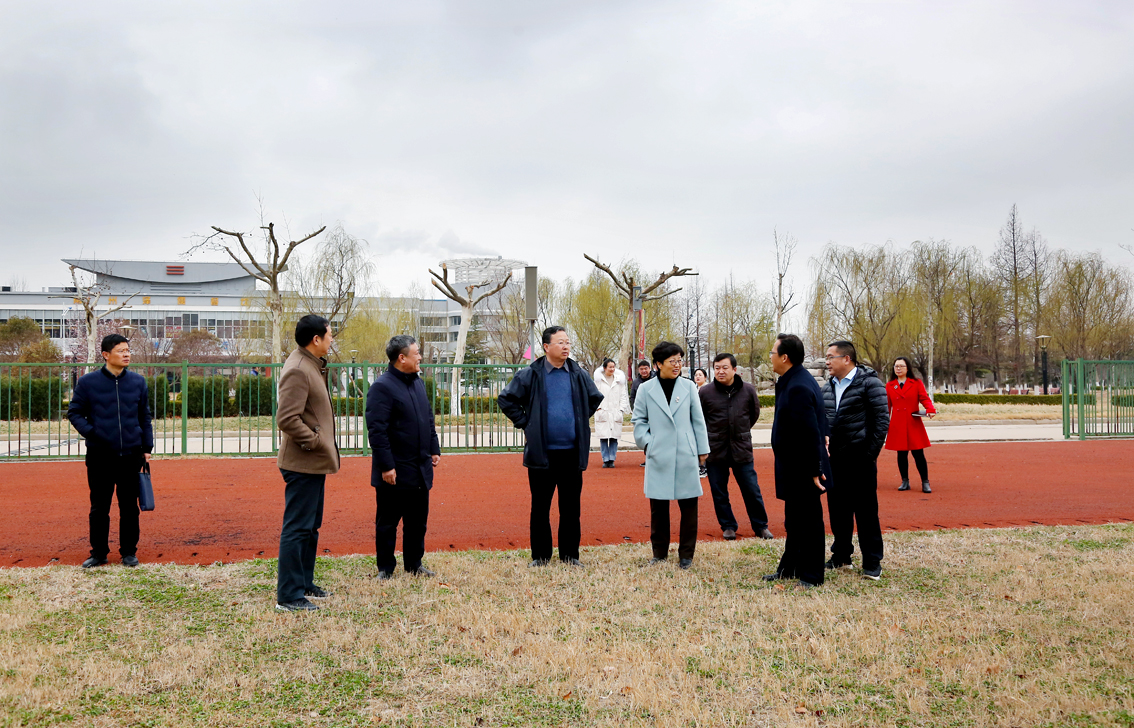 在行政楼会议室,宁晓明听取了学院领导班子关于校区运动场改造项目调研情况的汇报,深入了解项目推进中面临的实际问题和困难,对后续工作推进给予了指导。