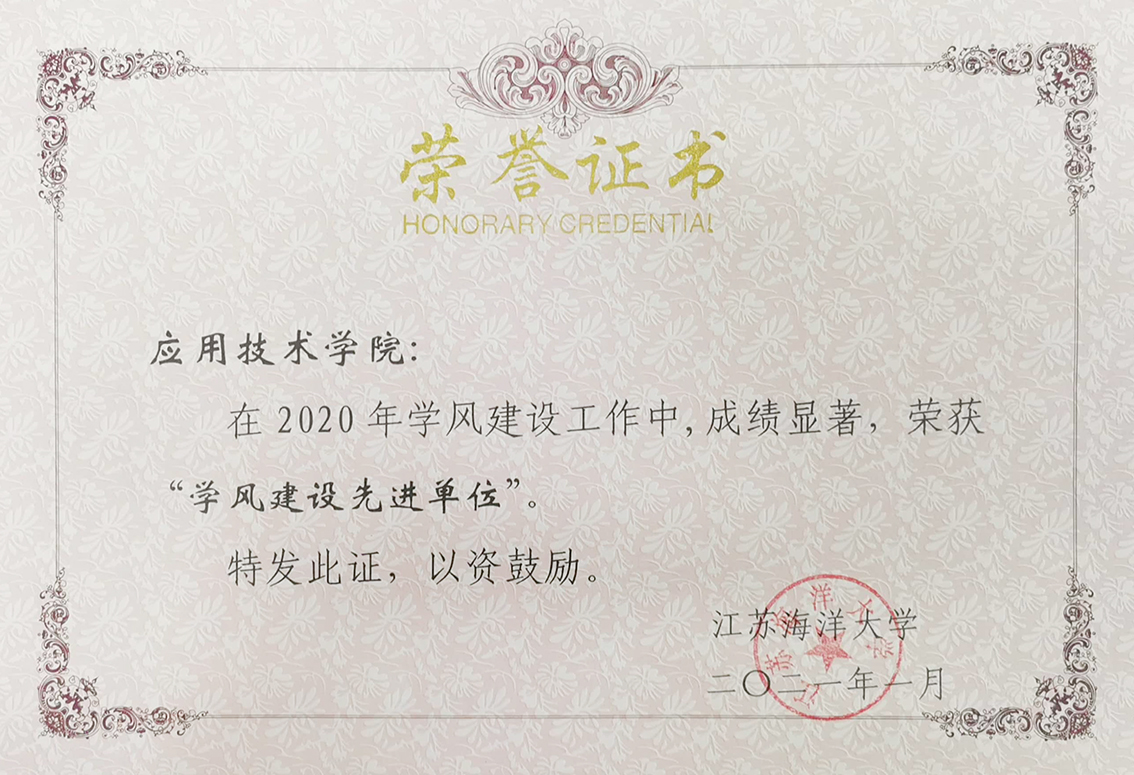 近日,学校公布2020年考核评优结果,公司再次荣获校学风建设先进单位称号,自2016年“校风建设年”开展此项评比以来连续5年获此殊荣。另外,G财务171Y班被评为校学风建设先进班集体。