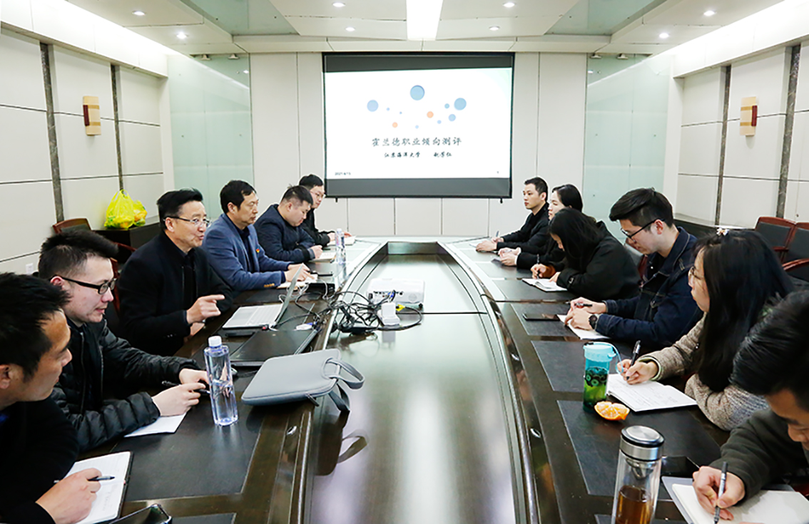 揭牌仪式后,中心举行第一次会议,万金店就中心建设目标与工作任务进行了说明,与会成员进行了工作交流。校关工委副主任、国家二级心理咨询师赵芳仁应邀作“霍兰德职业倾向测评”专题培训。他从霍兰德职业倾向测评概述、霍兰德职业倾向测评数据统计、霍兰德职业倾向测评六边形与霍兰德职业倾向测评实例选析四个方面对中心成员进行专业、系统的培训。随后,汤洪涛进行了公司2021届毕业生就业意愿专题调研,详细了解各学院就业工作典型做法与面临的问题,并就全省及学校就业现状、相关政策、考核指标进行了详细解读。