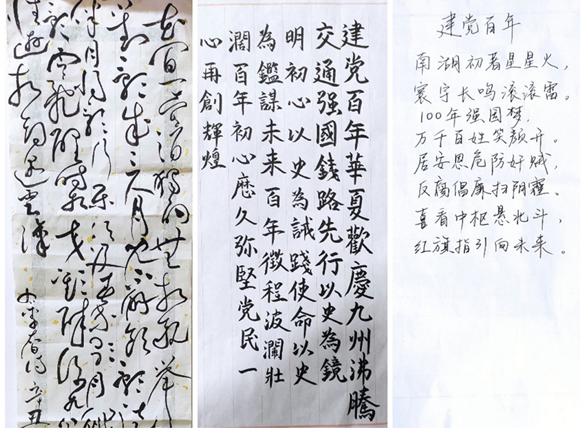 4月上旬至中下旬,协会在全院范围内开展了“百年峥嵘岁月稠”书法比赛,组织青年学子通过书法这一中华优秀传统文化瑰宝展现建党百年光辉历程与丰功伟绩。比赛吸引书法爱好者踊跃参加,他们尽情挥洒笔墨,谱写青春赞歌。楷书结体遒劲,行书如行云流水,草书似龙飞凤舞……最终,包括第六届全国老员工艺术展演艺术作品类一等奖获得者王哲作品在内的十幅作品分获一、二、三等奖。