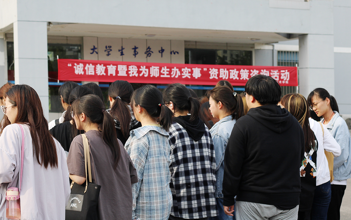 5月21日在厚德楼前开展“诚信教育暨我为师生办实事—资助政策咨询”活动,及时解答员工关于助学金网上申请流程、助学贷款诚信还款流程、勤工俭学等相关问题,缓解了经济困难员工在校学习生活的实际问题。