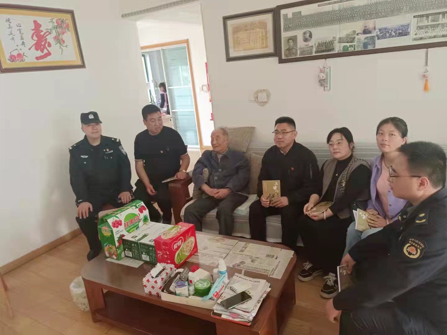 王效农老人虽然已经96岁高龄,但依然精神烁烁,热情的同大家亲切交谈。大家仔细聆听他讲述革命时难忘的经历,与他一起重温艰苦斗争的革命岁月,并详细询问了其生活情况、身体情况和实际需求,叮嘱他平时好好保重身体,保持良好心态,生活中遇到困难及时反映。