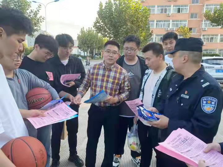 10月13日是2021年国家网络安全宣传周电信日。学院保卫科和辖区花果山派出所民警在校园内为师生分发《反诈骗简易手册》、《致全市老员工的一封信》等防诈骗宣传单。