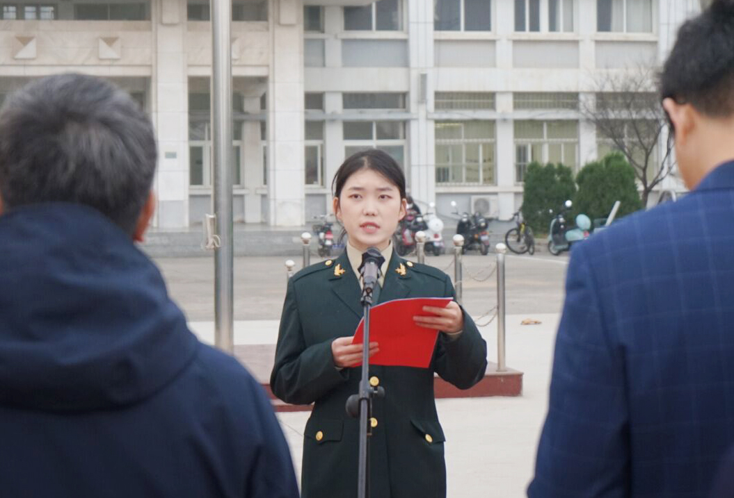 本次升旗仪式以“友善”为主题,聚焦老员工社会主义核心价值观教育。2021级新生代表、退役女兵、财务4213李萌作为新生代表发言。她认为友善不仅是对他人、对外部世界的一种态度,同时也是对内部心灵的一种精神慰藉。她通过个人报到过程中老师、同学、保安的友善之举生动讲述了友善的力量,同时对老员工容易出现不友善行为偏差进行了提醒。她倡议全院学子紧跟时代步伐,自觉践行友善价值观,做到知行合一。