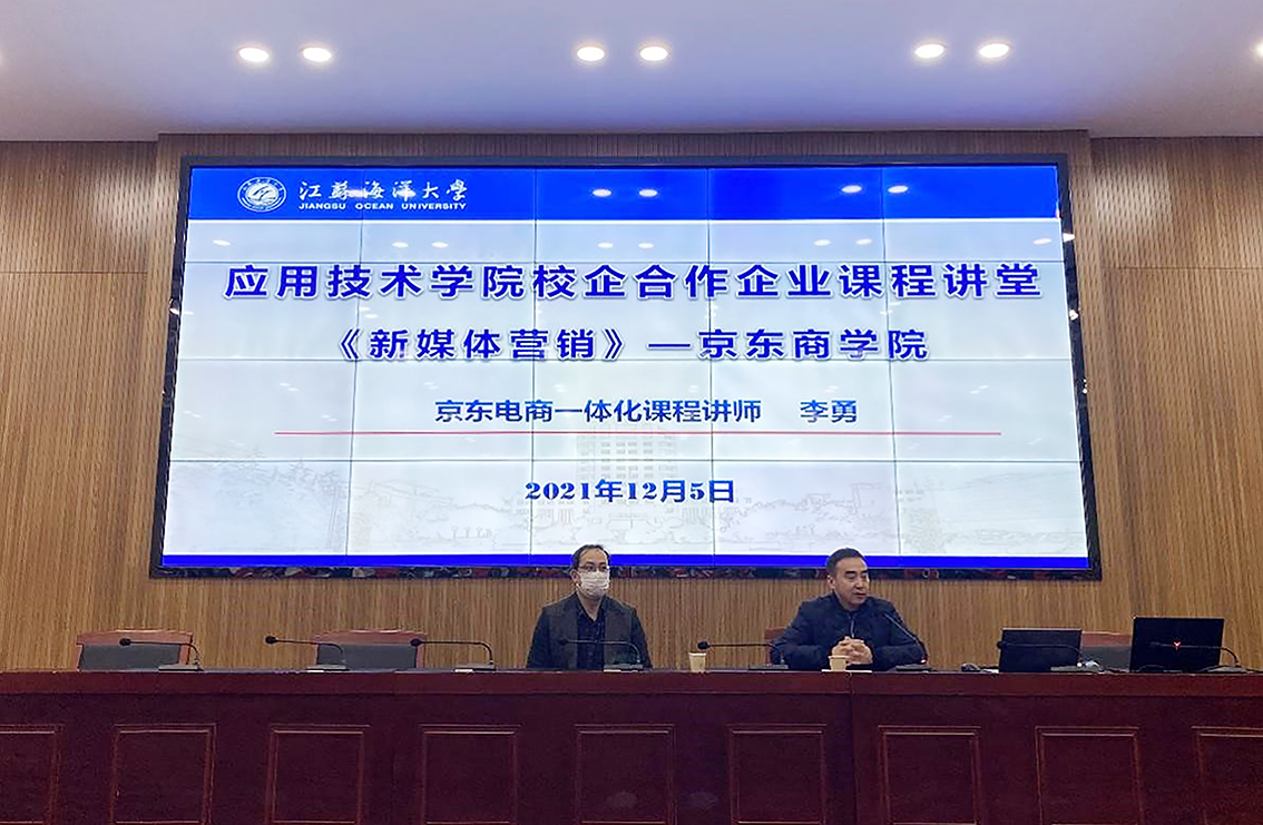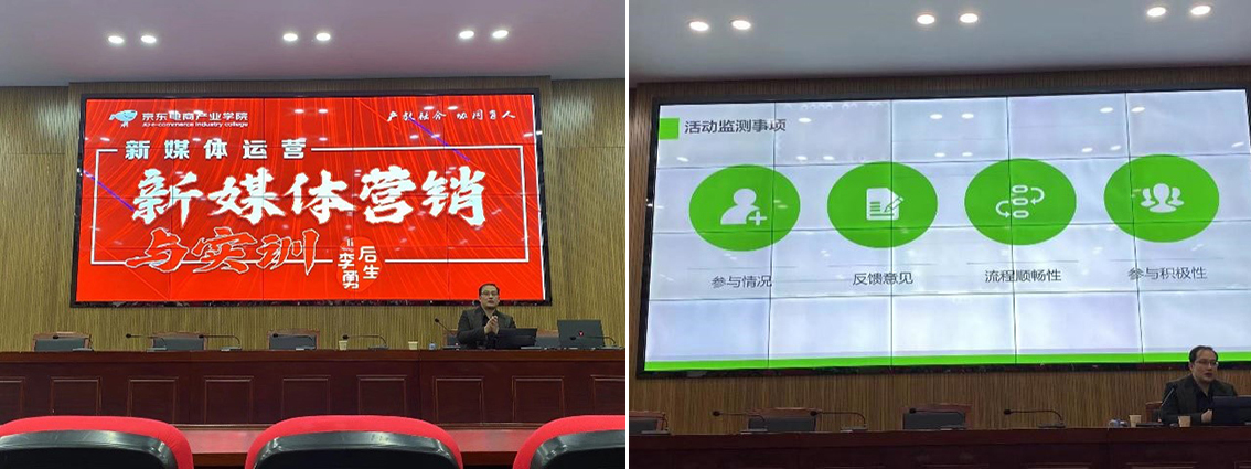 12月4日,学院在敦行楼报告厅举办校企合作企业课程讲堂,《新媒体营销》顺利开讲,该课程是京东创新创业孵化中心结合学院商科员工的培养计划与实际拟定的特色课程之一。京东科教中心产教融合经理季佳莹、学院副经理隋福利、部分商科部教师出席开讲仪式,课程由京东电商一体化讲师李勇主讲。