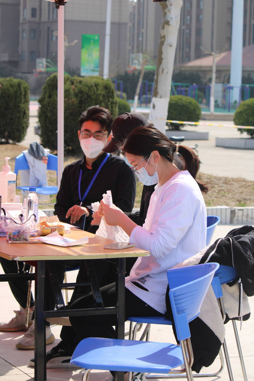 闻风而动脚步匆匆,疫情就是无声的命令。“3月6日第一次核酸检测采样工作,虽然等待时间较长,但采样现场没有看到一丝抱怨和争吵,大家都自觉服从志愿者安排,有秩序、守纪律,我觉得我们的同学都是最可爱的。”王鑫彤老师略带腼腆的说到,笑意的眼睛里透露出满满的自豪和满足。“你敢相信吗,每天晚上的志愿者群里报名接龙,比抢红包还激烈咧!核酸检测采样后的一声声谢谢,买了矿泉水送到采样篷下又悄悄离开的同学,白天做志愿者晚上巡逻校园的退伍老员工,食堂门口为大家消毒的员工党员……好多暖心的人和事,说也说不完。”