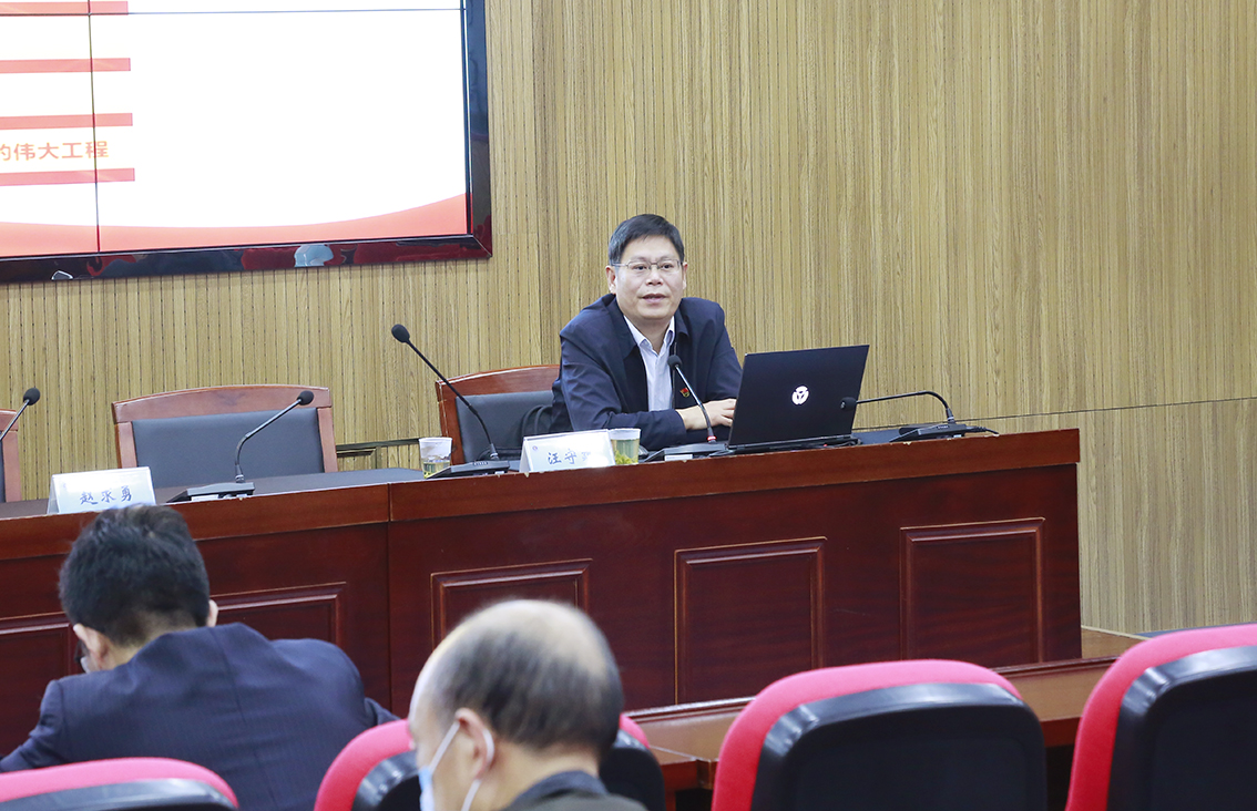 汪守建做了题为《坚定不移全面从严治党》的辅导报告,他谈了学习党的二十大精神的深刻感悟,并从充分认清严峻复杂形势、牢固树立规矩敬畏意识、切实强化“两个责任落实”等三个方面论述必须坚定不移推进全面从严治党。报告中,他用详实的数据和鲜明的案例,提醒与会党员要知敬畏、守纪律、强修养,提高政治判断力、政治领悟力、政治执行力,用习近平新时代中国特色社会主义思想武装头脑,把学习成效转化为坚定理想、锤炼党性和指导实践、推动工作的强大力量。