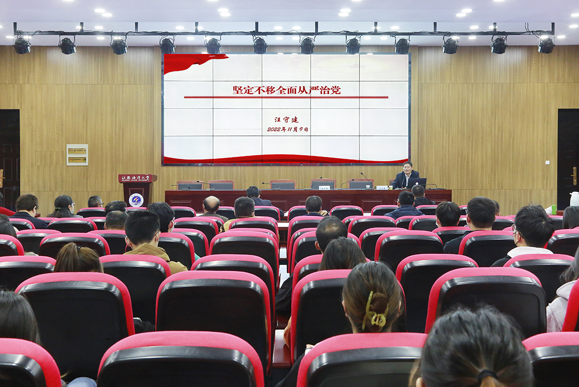 11月9日,公司党委邀请校纪委副书记汪守建来院做专题辅导报告,公司党委书记赵求勇主持会议,全体教职工党员及员工党员代表参加会议。